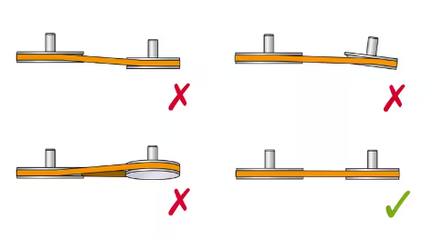 El dispositivo alinea las ranuras, en lugar de las caras, de la polea para correa en V, para lograr una alineación óptima de poleas con anchos o caras distintos